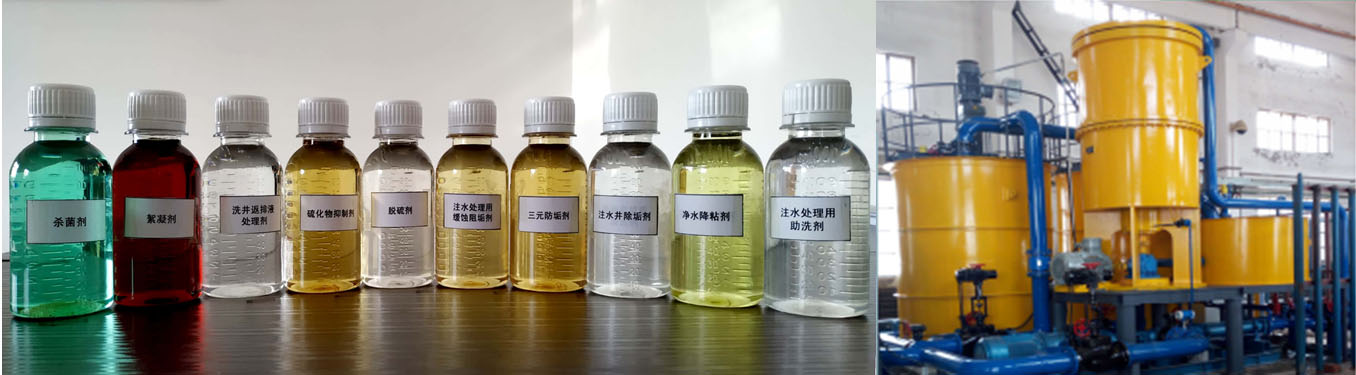 針對(duì)油田的實(shí)際情況,公司開(kāi)發(fā)油田水處理助劑共10余種。產(chǎn)品主要包括:殺菌劑系列產(chǎn)品三項(xiàng)、絮凝劑、洗井返排液處理劑、硫化物抑制劑、脫硫劑、注水處理用緩蝕阻垢劑、三元防垢劑、除垢劑、凈水降粘劑、注水處理用助洗劑等產(chǎn)品,目前廣泛應(yīng)用在大慶油田。