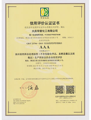 大慶華營(yíng)化工有限公司成立于2006年7月10日,注冊(cè)資金3300萬(wàn)元,公司類(lèi)型為有限責(zé)任公司。位于大慶高新技術(shù)產(chǎn)業(yè)開(kāi)發(fā)區(qū)宏偉園區(qū),是一家集油田助劑產(chǎn)品的研發(fā)、生產(chǎn)、銷(xiāo)售和技術(shù)服務(wù)為一體的現(xiàn)代化高新技術(shù)企業(yè)。公司注重科技創(chuàng)新,公司擁有18項(xiàng)自主知識(shí)產(chǎn)權(quán)。企業(yè)承擔(dān)過(guò)國(guó)家火炬計(jì)劃重點(diǎn)項(xiàng)目、國(guó)家科技型中小企業(yè)創(chuàng)新項(xiàng)目等,2011年被科技部火炬高新技術(shù)產(chǎn)業(yè)開(kāi)發(fā)中心評(píng)為國(guó)家火炬計(jì)劃重點(diǎn)高新技術(shù)企業(yè)。公司十余種產(chǎn)品獲得中國(guó)石油天然氣集團(tuán)公司產(chǎn)品質(zhì)量認(rèn)可證書(shū),其中粘穩(wěn)型驅(qū)油劑獲國(guó)家火炬計(jì)劃重點(diǎn)項(xiàng)目證書(shū)。公司憑借多年對(duì)大慶油田及周邊油田地質(zhì)情況的研究,可針對(duì)各油田地層特點(diǎn)調(diào)整產(chǎn)品的配方,更好地發(fā)揮各類(lèi)油田助劑的性能。